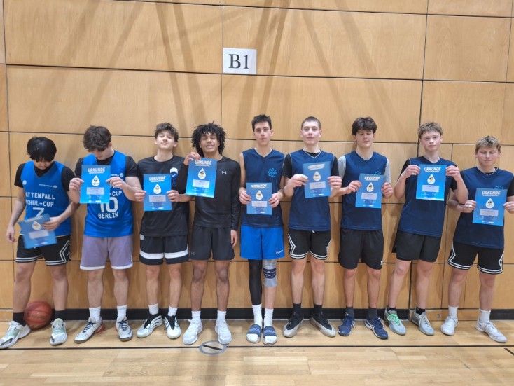 Davyd (10b), Carlos, Mino (10a), Oskar (10e) und Stiven (9b) in unserer Mannschaft.
