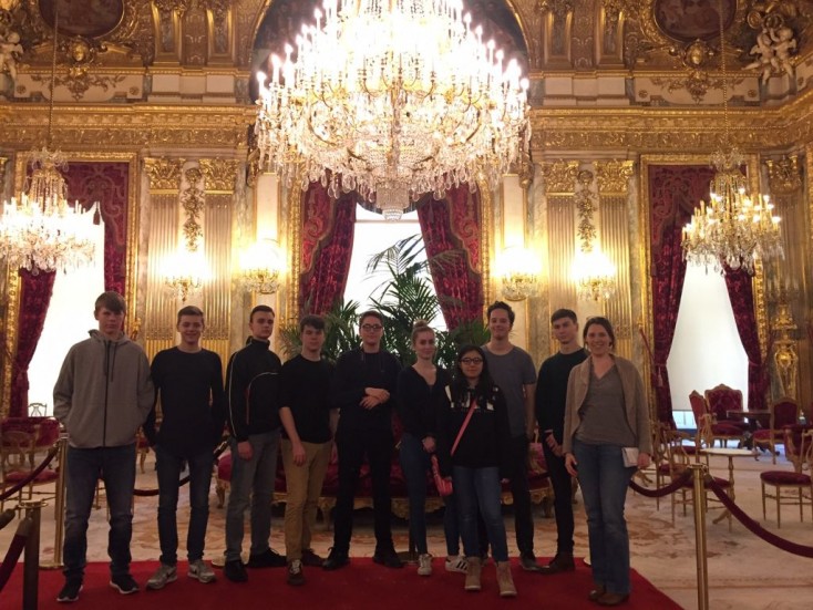 Nach einigen Turbulenzen während der Anreise, kamen wir Donnerstagabend erschöpft in unserem Hotel an. Nach wenigen Stunden Schlaf machten wir uns Freitag früh gleich auf den Weg in die Pariser Innenstadt und suchten nach Spuren von Absolutismus und Ludwig XIV. Dort sahen wir uns zunächst den Palais Royal an, welcher sich direkt gegenüber vom Louvre befand. Nachdem uns Leyla ausführlich und dieses Gebäude, seine Funktion und Geschichte informiert hatte, begaben wir uns zu Fuß auf den Weg zum Arc de Triumphe. Mittags trafen wir uns mit dem Leistungskurs von Frau Dinse im Louvre, um uns dort eine Ausstellung zu Napoleon III. anzusehen. Abends bestiegen wir dann natürlich noch eine der berühmtesten Sehenswürdigkeiten Frankreichs, den Eiffelturm.