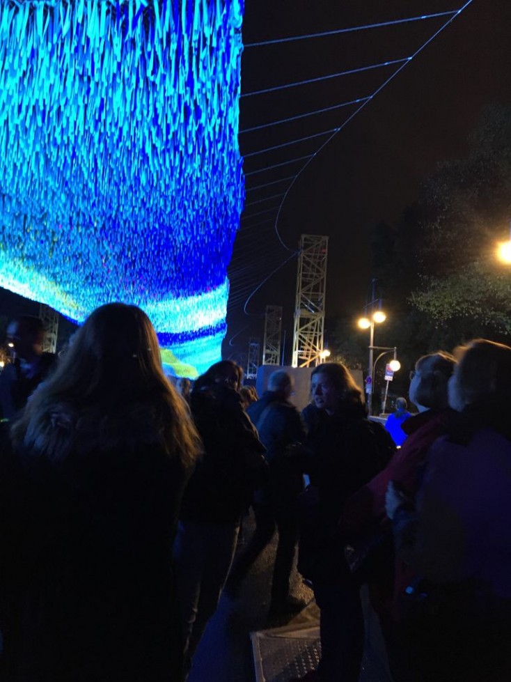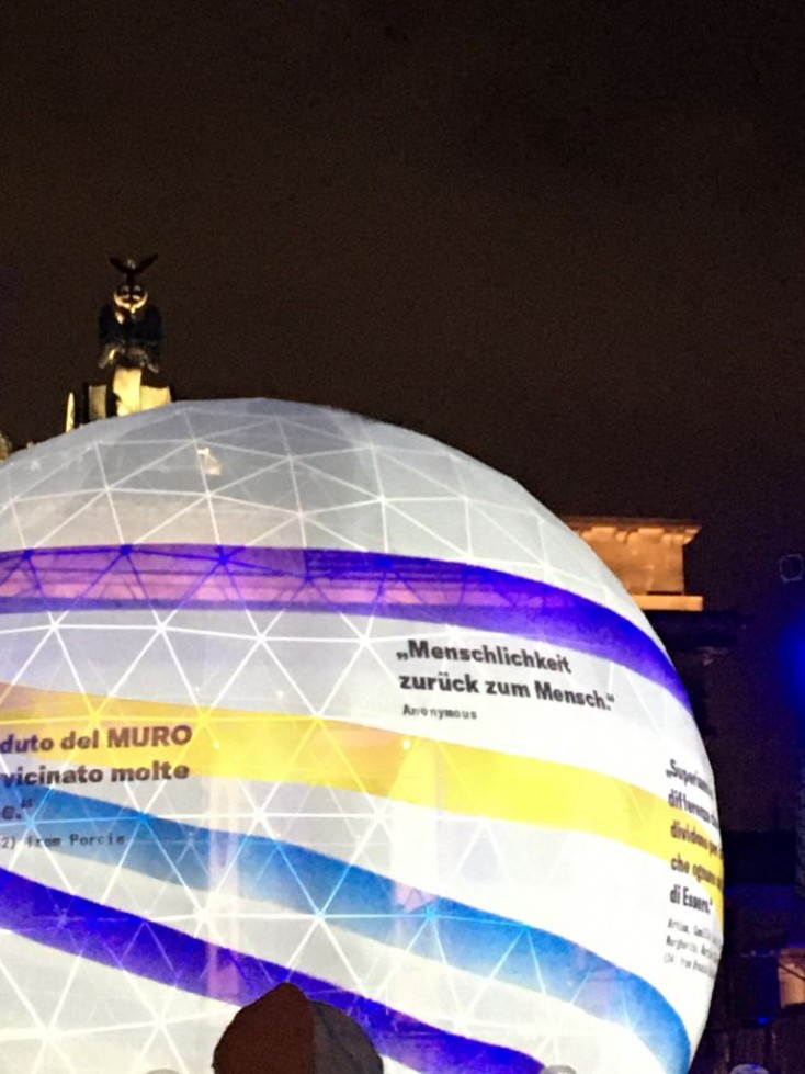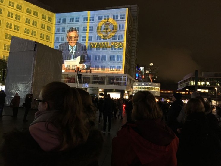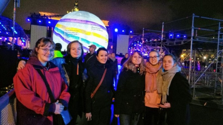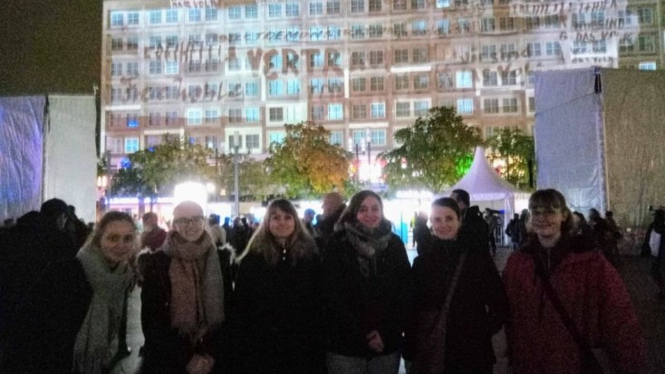 Anlässlich des 30jährigen Mauerfalls haben wir uns mit Schülerinnen der 10. Klasse und der Oberstufe sowie drei Lehrerinnen die Video-Installationen am Schloss und dem Alexanderplatz angesehen. Gestartet haben wir unseren Spaziergang zuvor am Brandenburger Tor, wo wir die Kunstinstallation „Vision in Motion“ mit 30000 Botschaften von Menschen aus aller Welt angesehen haben.