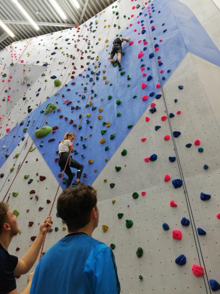 Obwohl die Höhe und Schwierigkeitsstufen einem Respekt eingeflößt haben, haben alle SchülerInnen und ich mehrere Routen bezwungen, bis die Hände nicht mehr greifen wollten und die Unterarme dicht gemacht haben. Alle haben die Herausforderung 'Wagnis' angenommen und sind ziemlich stolz und begeistert nach Hause gefahren.