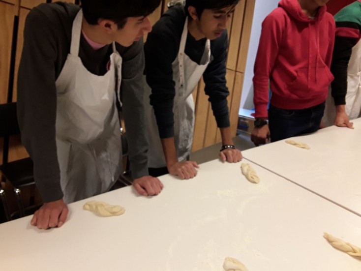 Zusammen buken sie das jüdische Brot Challah, das die Menschen des jüdischen Glaubens zum Schabath essen.