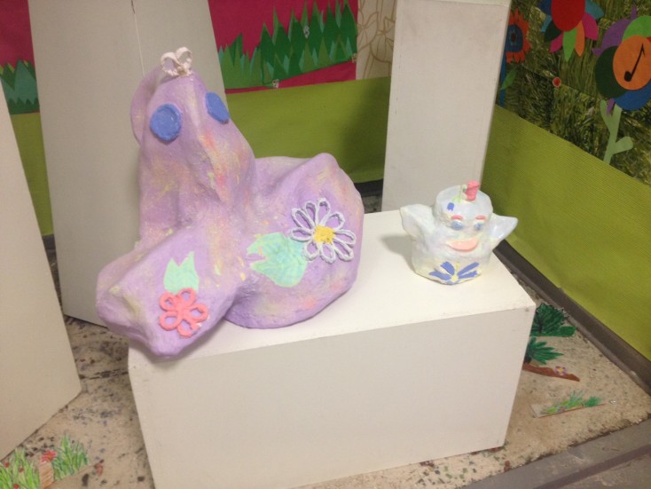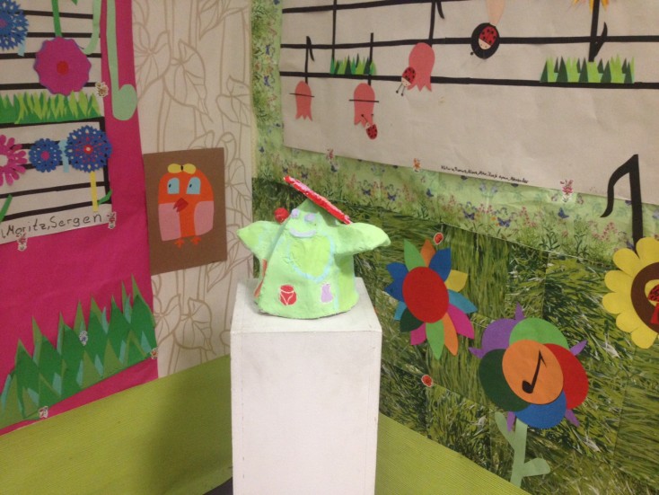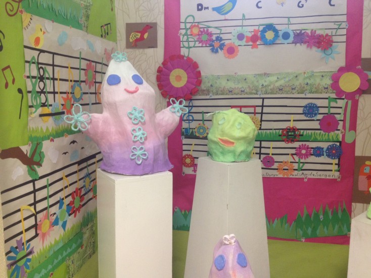 Im Foyer unserer Schule treiben sich seit einiger Zeit lustige Frühlingsgeister herum und erfreuen uns mit ihren frischen Farben und schelmischen Gesichtern. Erschaffen wurden sie von der Klasse 8b im Werkunterricht. Der "musikalische" Hintergrund, vor dem sie toben, wurde vom Wahlpflichtfach Kunst (8. Klasse) gestaltet.