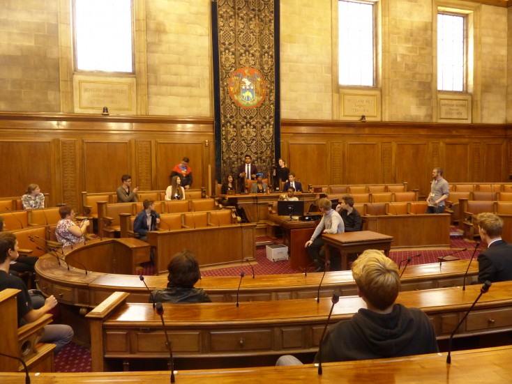 Die Auftaktveranstaltung fand in der Civic Hall von Leeds statt, wo wir zunächst der Verknüpfung von Menschenrechtsfragen und Klimawandel nachgingen. Eröffnet wurde die Konferenz von Cllr Alex Sobel und Paul Brennan, leitender Direktor von „Children’s Services“ in Leeds. Dabei stellten sie uns auch das UK- Jugendparlament vor. Diese Einrichtung nimmt das Potential und die Macht der jugendlichen Stimmen sehr ernst und gibt den gewählten Jugendlichen sogar die Möglichkeit im House of Parlament ihrer Meinung Ausdruck zu verleihen. Es ist eine Auszeichnung in dieses Jugendparlament gewählt zu werden.