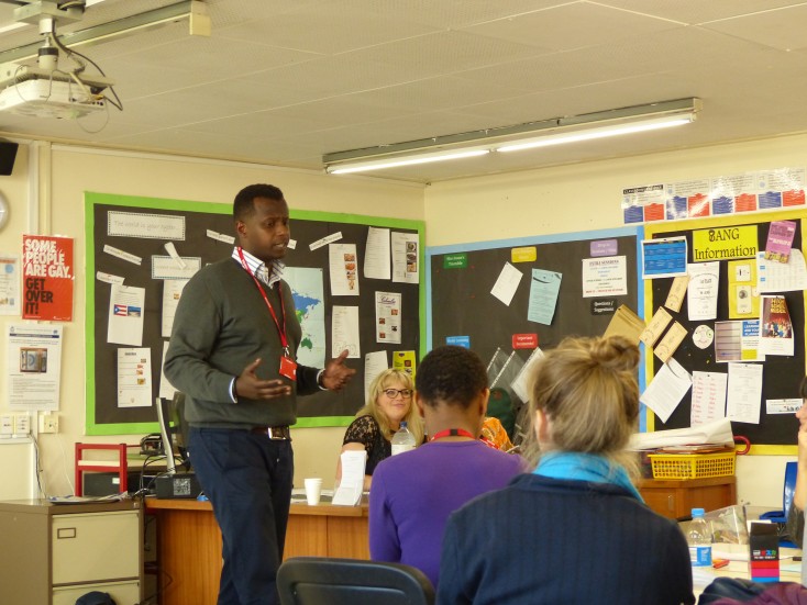 Anschließend hörten wir einen Vortrag von Olivier Nkunzimama von der Organisation Refugee Education Training And Support (RETAS), der die Verbindung zwischen den Folgen des Klimawandels und Migration herstellte, sowie andere Gründe der Migration anführte. Ungarn, Österreicher und wir berichteten dazu von der aktuellen Lage in unseren Ländern. In seiner Präsentation machte er auch auf Persönlichkeiten aus verschiedensten Bereichen aufmerksam, die einmal als Refugees nach England kamen und nebenbei auf die „Nationalspeisen“ Fish & Chips oder Curry, die beide gewiss keine Erfindung von Engländern waren.