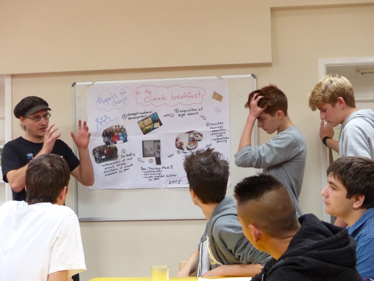 Zwischendurch wurden immer wieder Projekte der Jugendlichen vorgestellt. Dazu gehörten die sehr ambitionierte Global Justice Group an der Prince Henry’s Grammar school, die Green Peers aus Österreich beeindruckten z.B. mit Projekten zur Müllvermeidung an der Schule, mit dem Schulgartenprojekt und der Aufforstungsaktion in einer heimischen Bergregion. Von den tschechischen Schüler_innen wurde uns eine Kostprobe ihrer selbst gefertigten fairen Schokolade überreicht. Levin und Luca präsentierten für uns das Klimafrühstück und haben sicher einige follower gewonnen, nicht zuletzt die tschechischen Schüler_innen, die nunmehr in Prag mit diesem Projekt starten werden.