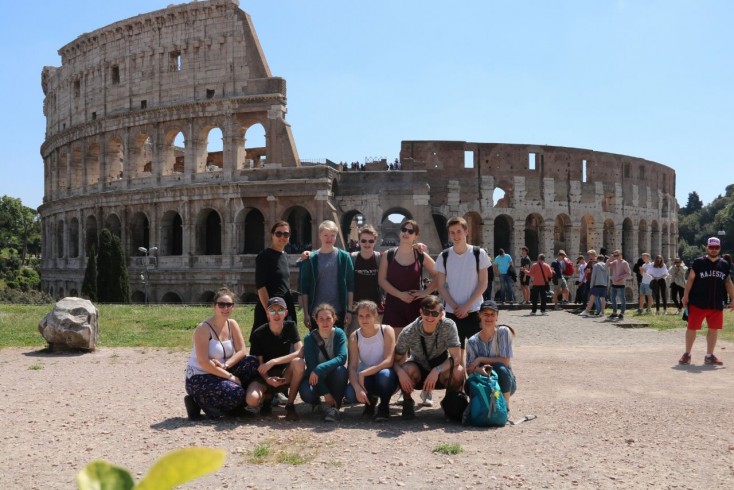 Wir waren neun Schüler/innen und zwei Lehrerinnen (Frau Steppat, Frau Bender), die sich schon lange vor der Fahrt um ein interessantes Programm und schöne Freizeitorte gekümmert haben. Wir haben bereits viereinhalb Jahre Latein belegt und diese Fahrt war der absolute Höhepunkt, weil wir unzählige Kirchen und Plätze gesehen haben.
