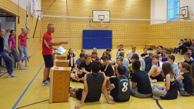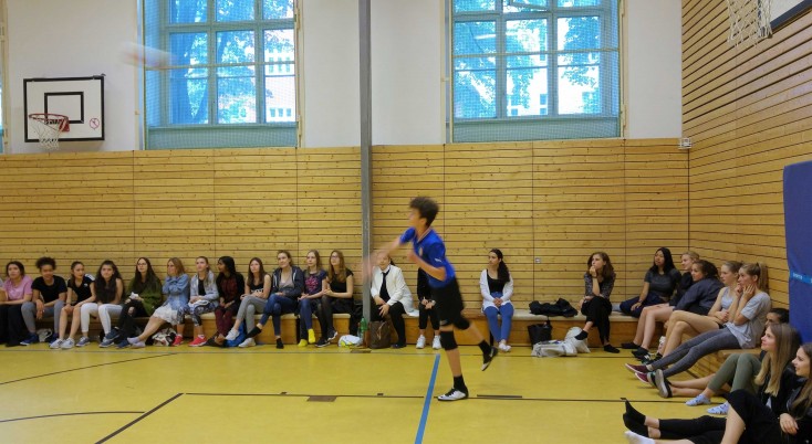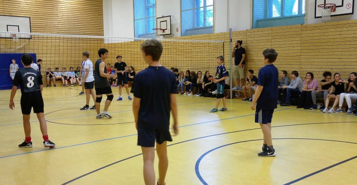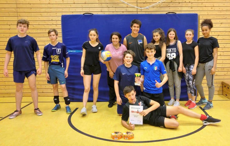 Beim Volleyballturnier der 9. Klassen am 13.7.2016 gewann die Klasse 9d mit knappem Vorsprung vor der Klassse 9b . Beide Klassenteams kamen auf jeweils fünf Siege, die 9d kam jedoch auf insgesamt mehr erzielte Punkte. Damit wurde diese Klasse auch ihrer Favoritenrolle gerecht, denn die Schülerinnen und Schüler der 9d haben im Vorfeld des Turniers fleißig an der Volleyball-AG teilgenommen.