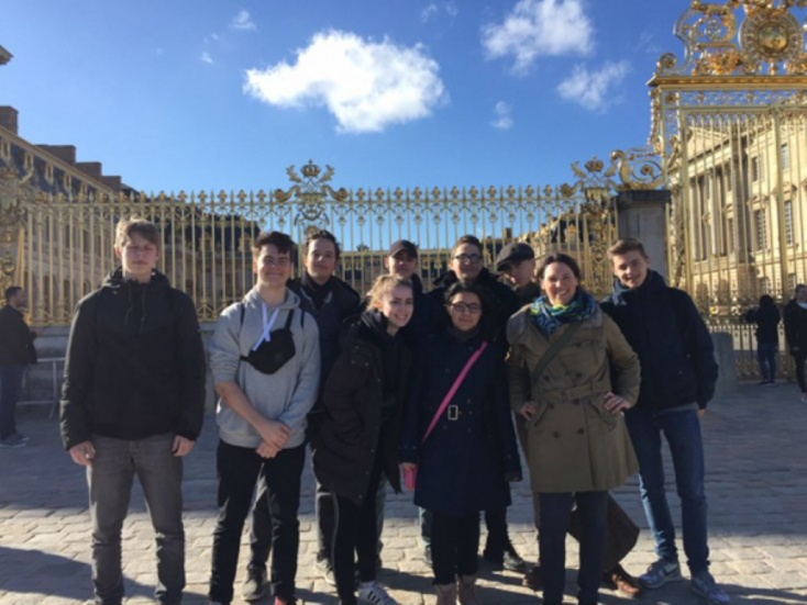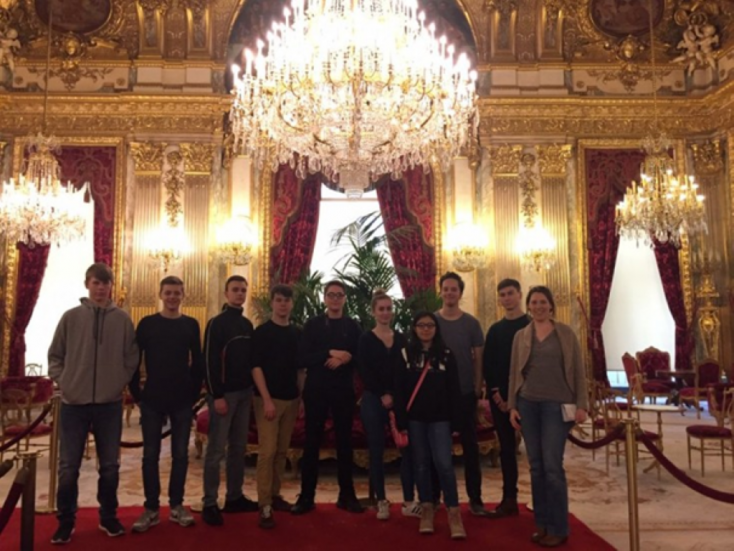 Nach einigen Turbulenzen während der Anreise, kamen wir Donnerstagabend erschöpft in unserem Hotel an. Nach wenigen Stunden Schlaf machten wir uns Freitag früh gleich auf den Weg in die Pariser Innenstadt und suchten nach Spuren von Absolutismus und Ludwig XIV. Dort sahen wir uns zunächst den Palais Royal an, welcher sich direkt gegenüber vom Louvre befand. Nachdem uns Leyla ausführlich und dieses Gebäude, seine Funktion und Geschichte informiert hatte, begaben wir uns zu Fuß auf den Weg zum Arc de Triumphe. Mittags trafen wir uns mit dem Leistungskurs von Frau Dinse im Louvre, um uns dort eine Ausstellung zu Napoleon III. anzusehen. Abends bestiegen wir dann natürlich noch eine der berühmtesten Sehenswürdigkeiten Frankreichs, den Eiffelturm.